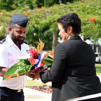 Cérémonie de dépôts de gerbe ce vendredi 5 décembre au matin place Bir-Hakeim à Nouméa. Autorités civiles et militaires de la Nouvelle-Calédonie se sont réunies à l’invitation des services de l’Etat. Nadine Jalabert, 7ème Vice-Présidente du Congrès, représentait l’institution pour ce moment de recueillement.