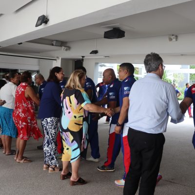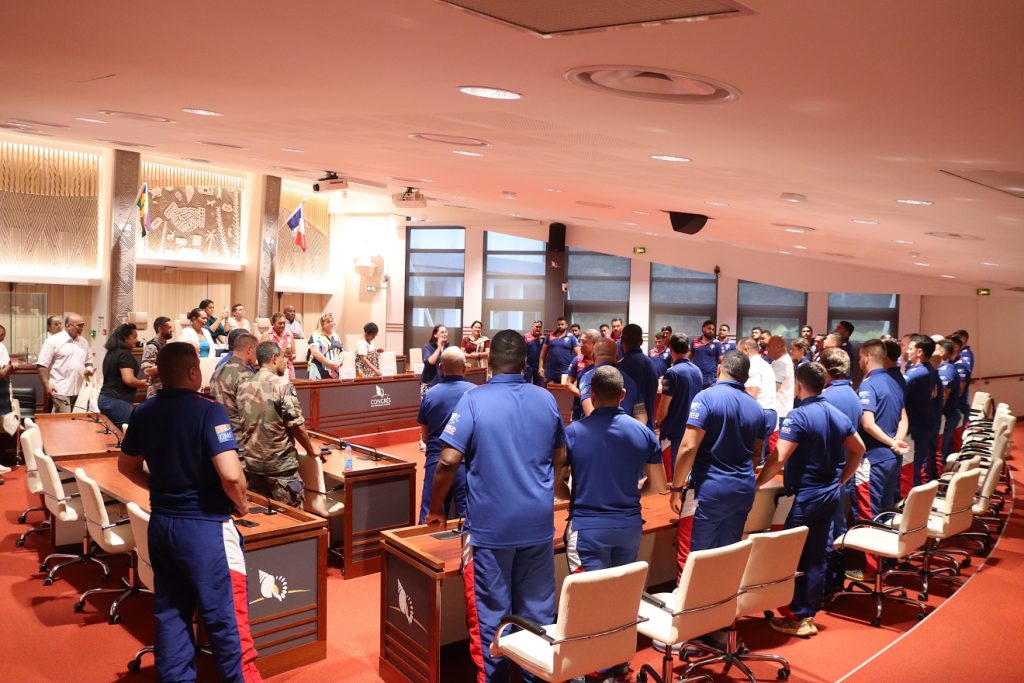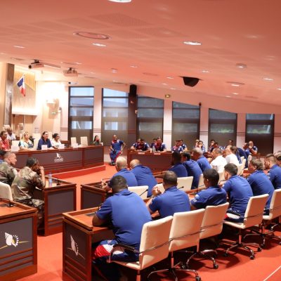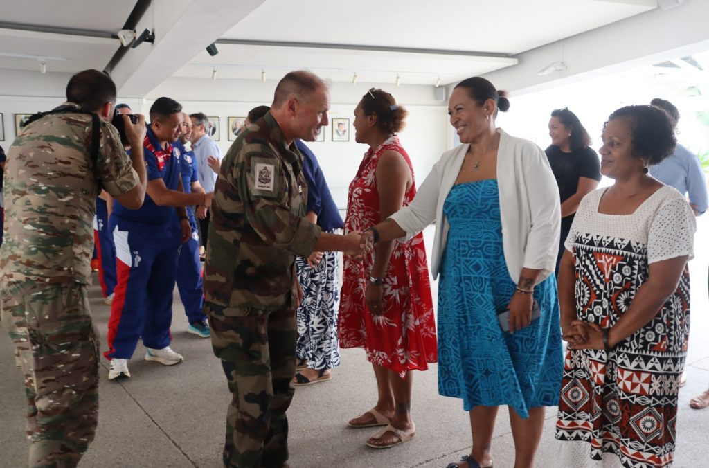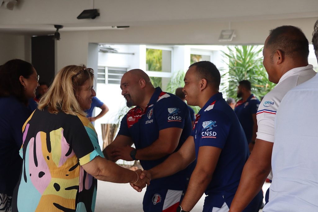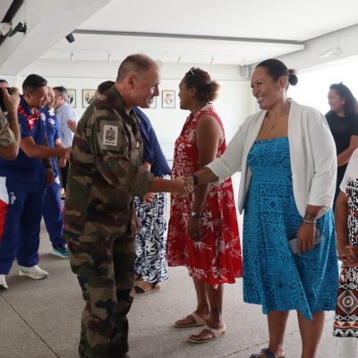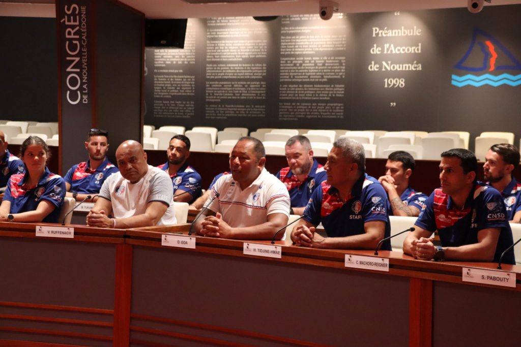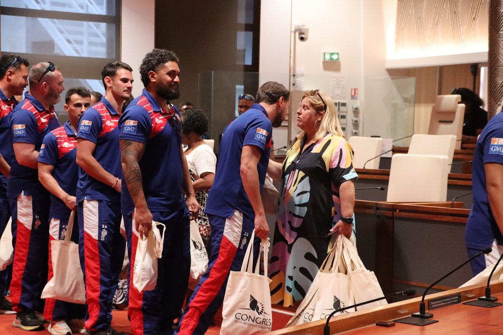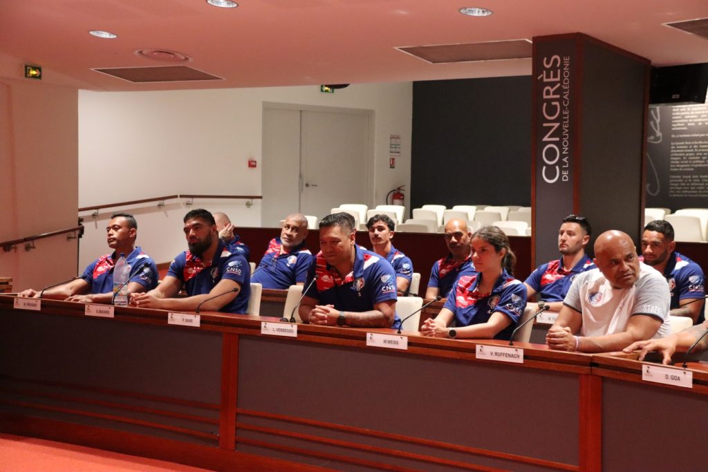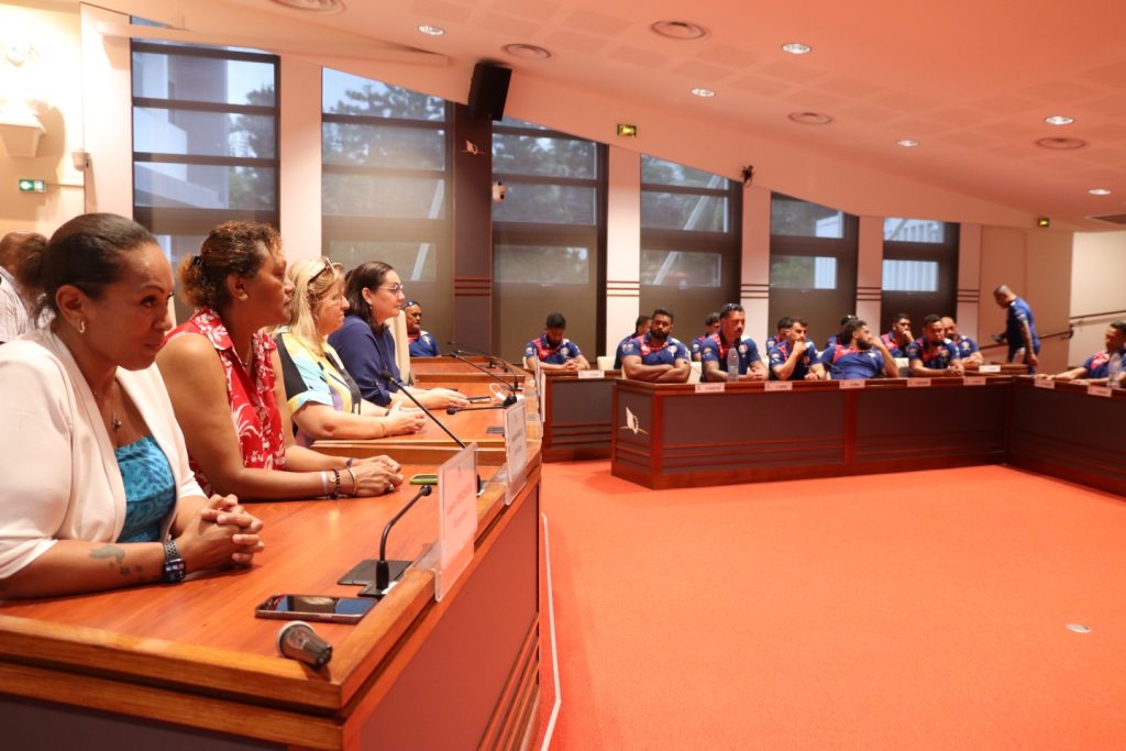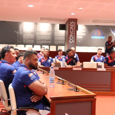 Le XV du Pacifique (sélection nationale militaire) a été reçu boulevard Vauban le 25 février 2026 par la Présidente de l’institution, Mme Veylma FALAEO et la Présidente de la commission des sports, Mme Muriel MALFAR-PAUGA, entourées des conseillères Laura VENDEGOU, Ines KOUATHE, Isabelle KALOI et du conseiller Philippe DUNOYER.