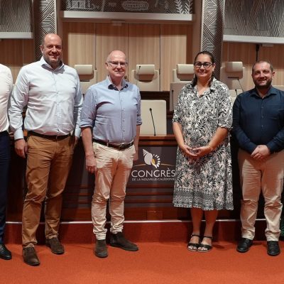 La 12ème édition calédonienne de la Semaine de l’industrie, organisée par la Fédération des Entreprises et des Industries de Nouvelle-Calédonie (FEINC) du 24 novembre au 5 décembre 2025, bat son plein. C’est dans ce cadre que la Présidente du Congrès, Veylma Falaeo, a rencontré le 3 décembre 2025 Benoît Simon, Maxime Costilhes et Sébastien Muller. Des personnalités économiques nationales de haut rang, invitées sur le territoire du 1er au 5 décembre par Xavier Benoist, le Président de la FEINC. Benoît Simon est le fondateur et directeur de Planète Publique. Maxime Costilhes et Sébastien Muller sont respectivement directeur général et Vice-Président de l’Association Nationale des Industries Alimentaires (ANIA).